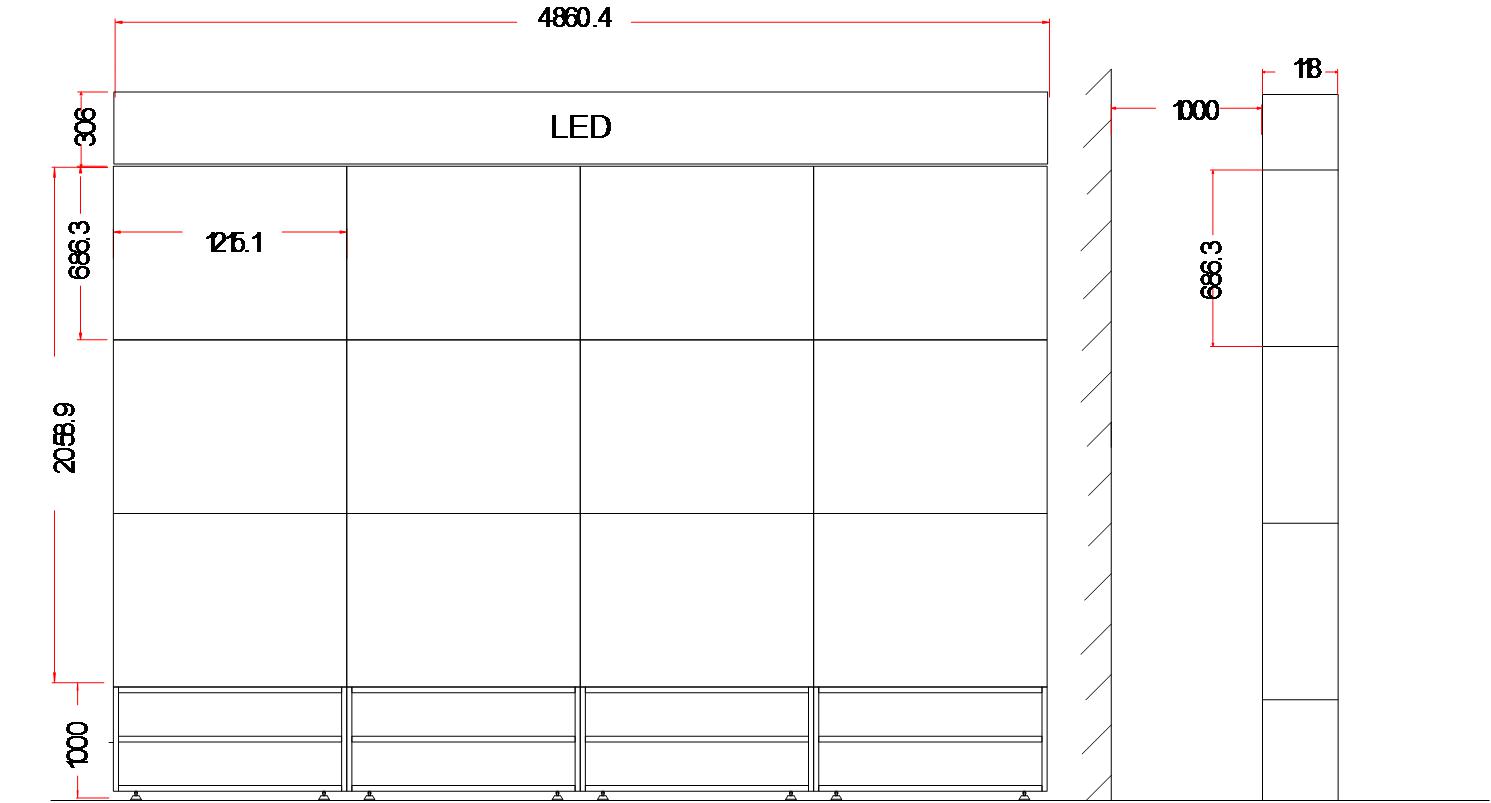 背后維護(hù)空間:默認(rèn)1000mm,實(shí)際空間根據(jù)用戶(hù)現(xiàn)場(chǎng)以及拼墻高度確定