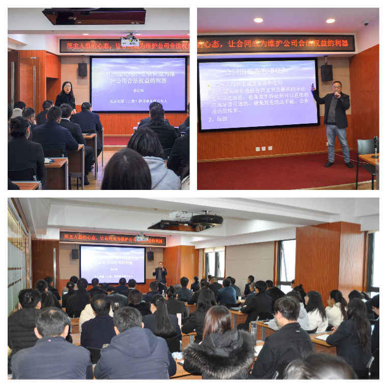 為增強(qiáng)全體員工的法律基礎(chǔ)知識,提升法律素養(yǎng),規(guī)避合同全生命周期管理過程中的法律風(fēng)險,保證公司業(yè)務(wù)經(jīng)營的可持續(xù)發(fā)展,3月3日上午,公司特邀李慶華律師開展了以“用主人翁的心態(tài),讓合同成為維護(hù)公司合法權(quán)益的利器”為主題的法律基礎(chǔ)知識專題培訓(xùn)。